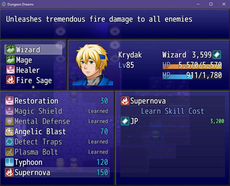 Magic Shield and Sprint though, and the high-mana-cost and JP skill